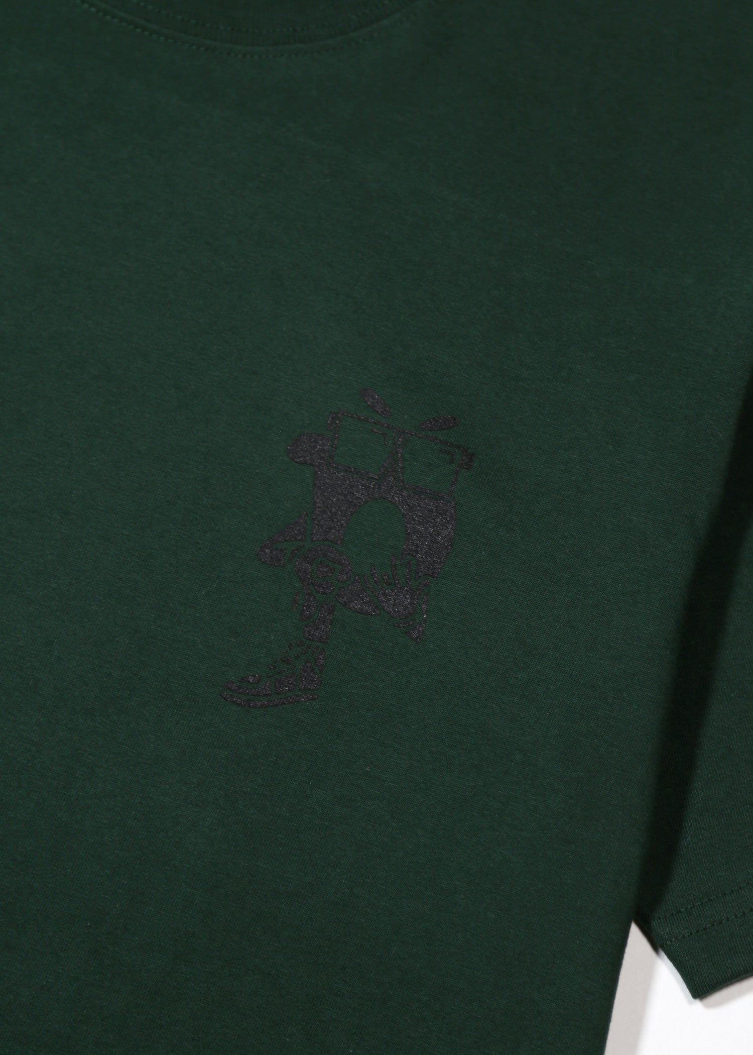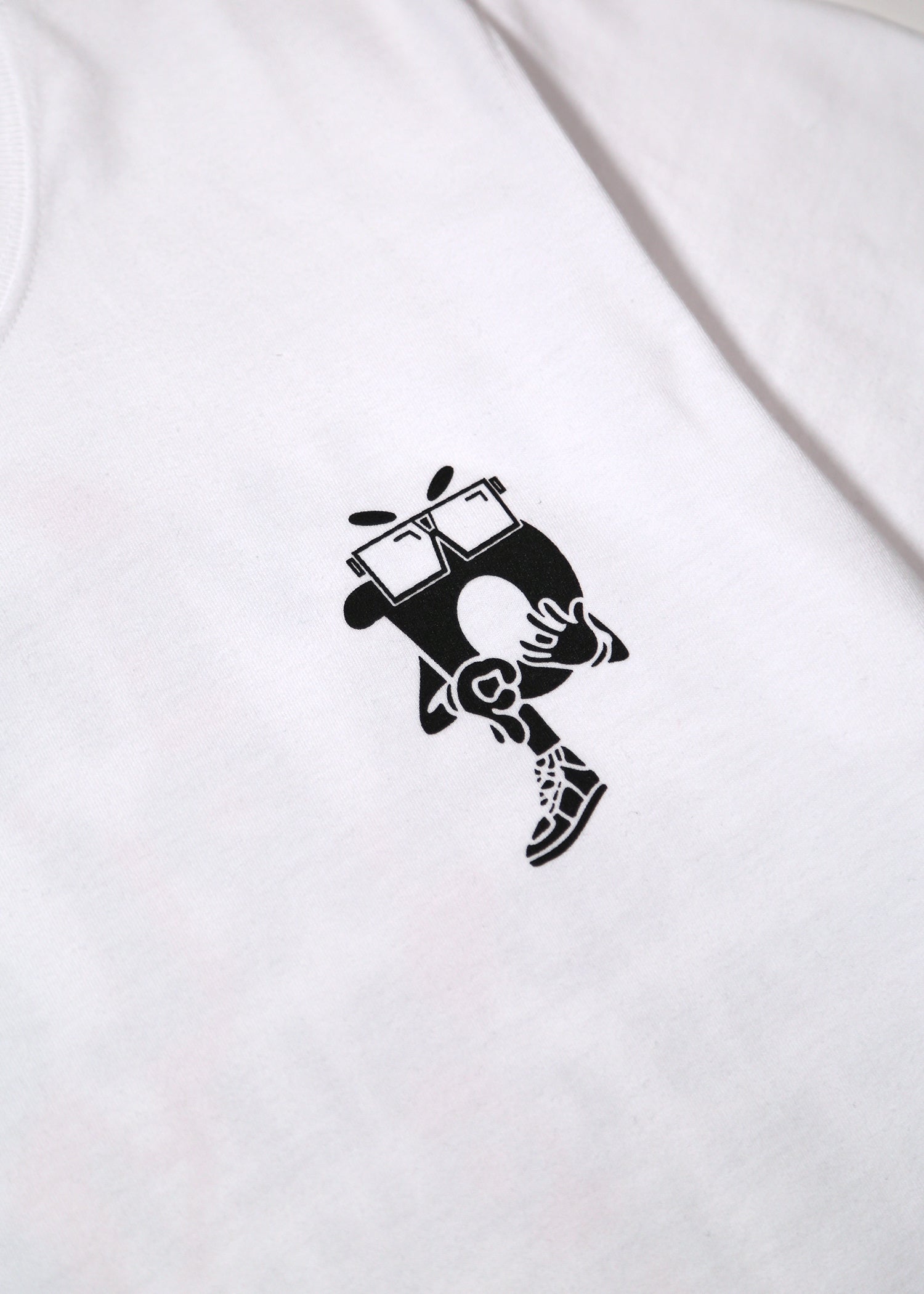 The "Community Service" Tee embellishment shown here features a screen printed front chest hit. The throw is on the infamous Goodfoot's "G" character - but with a Parlor twist. Some LV shades, and he's throwing up his "P23" set...
