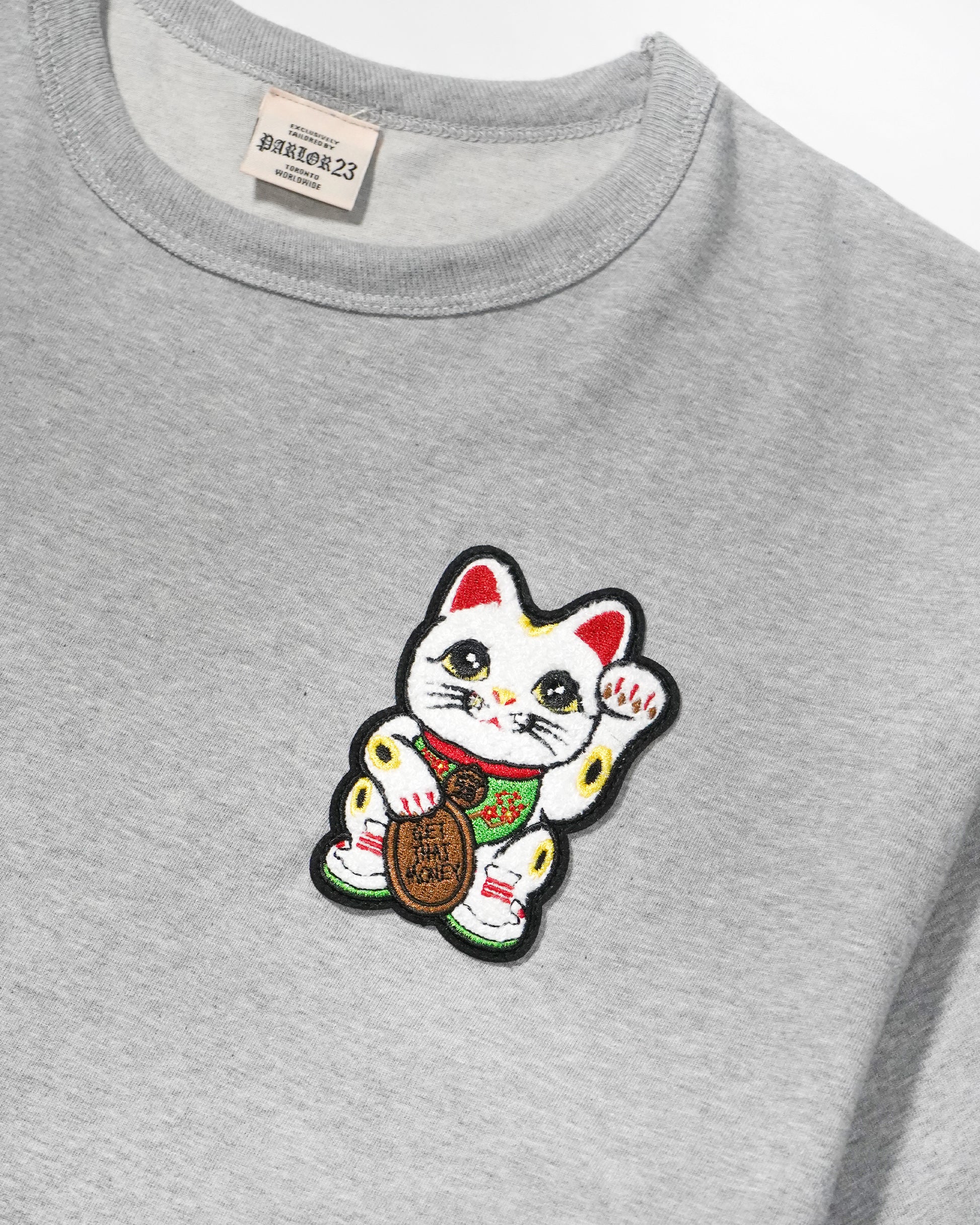Our classic "Get that Money" logo can be seen on the left chest, as a chenille patch embellishment paired with a hand screenprinted hit on the back.