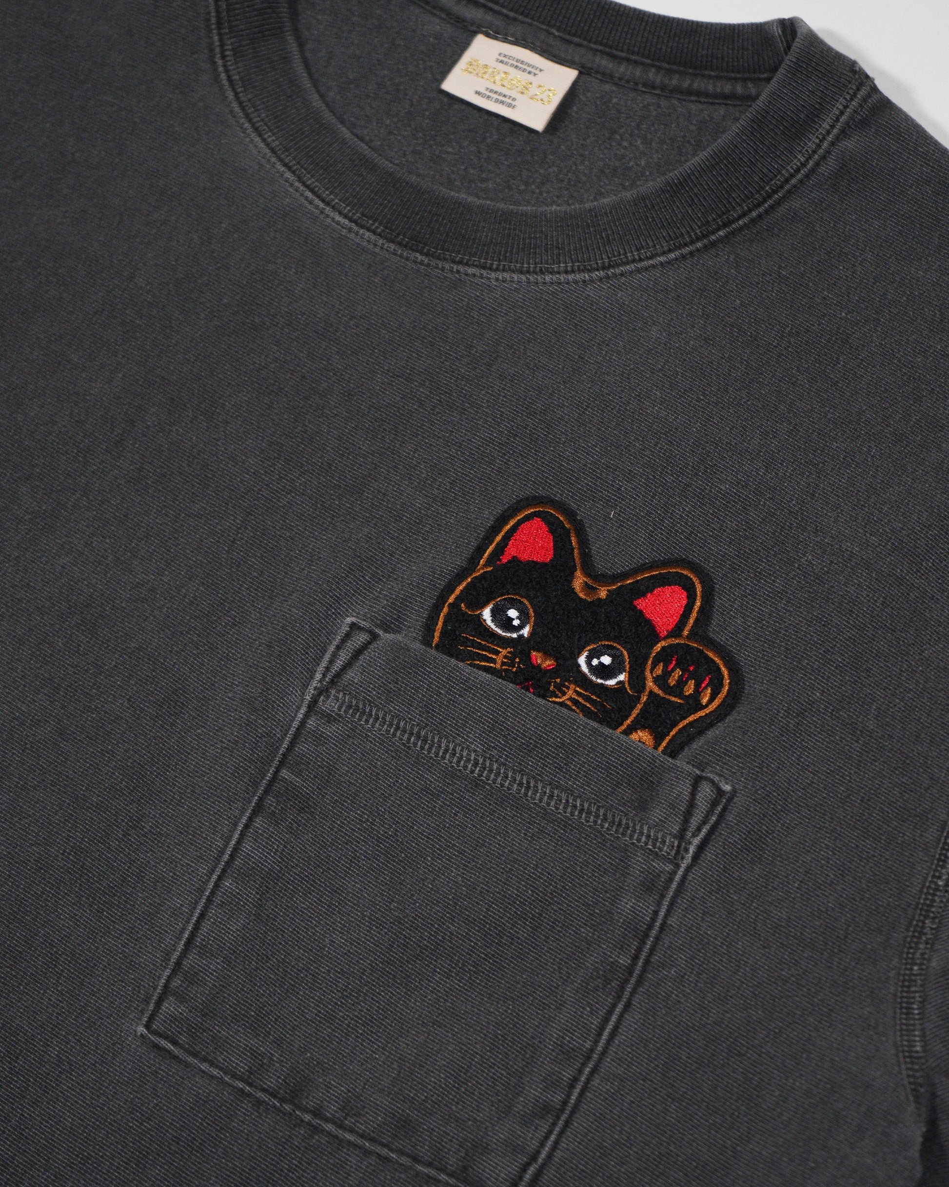 The "Get Money Woodgrain" tee embellishment shown here features a combination of Chenille & Embroidery with a front left chest hit of our Protective "Get Money Kitty", hidden behind a subtle pocket!