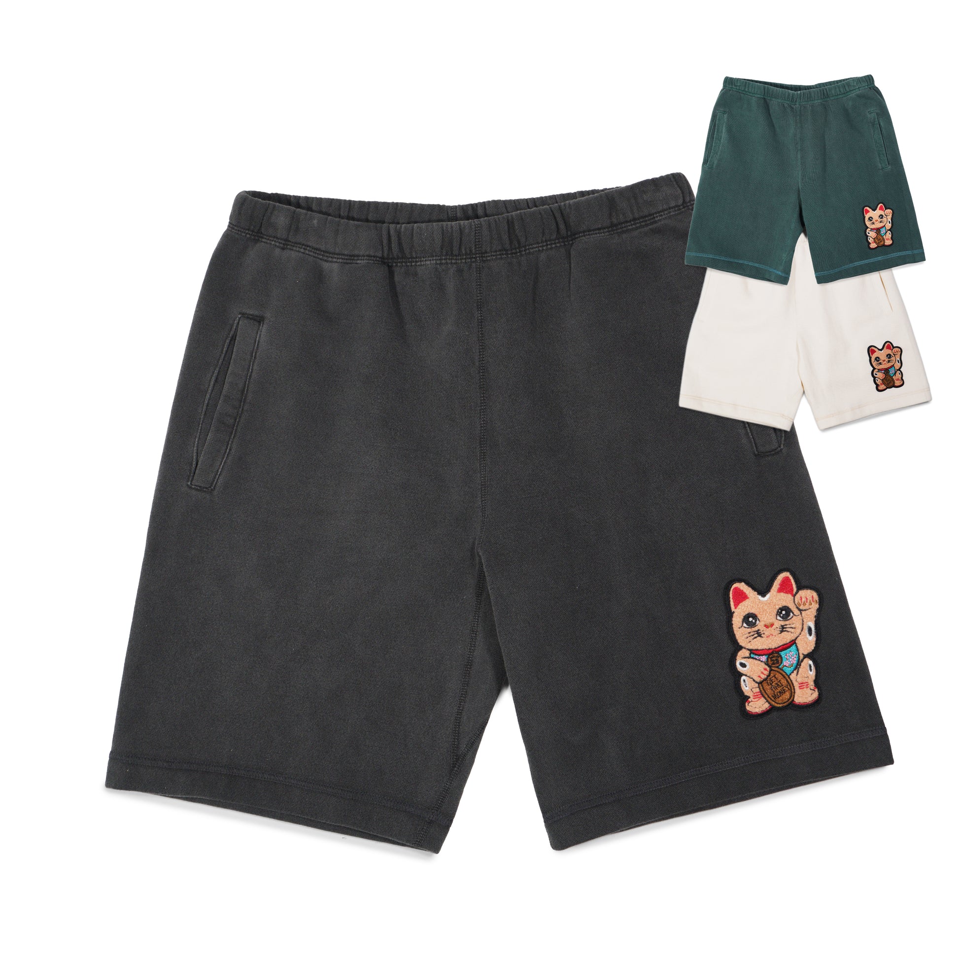 The "Get Money - Spadina Peach" Sweatshort embellishment shown here features a combination of Chenille & Embroidery with a front left leg hit of our Spadina Peach "Get Money Kitty"!