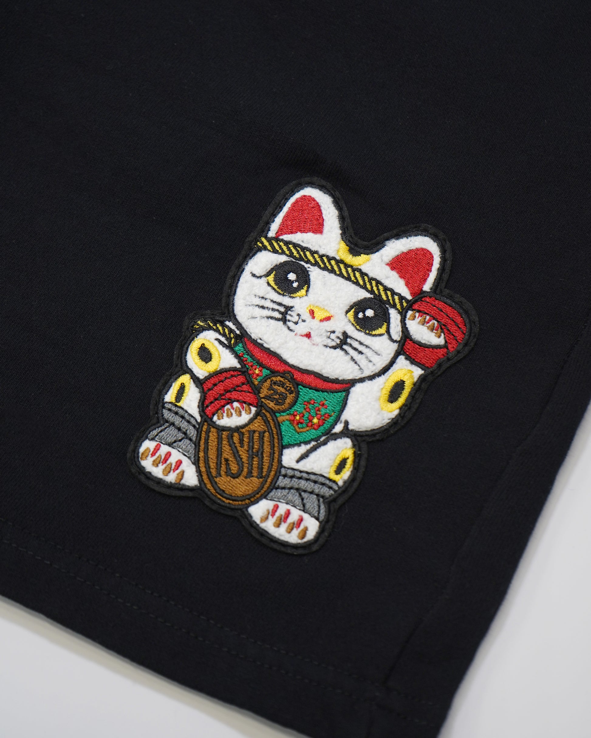 The "Get Money x ISH Promotions" shorts embellishment shown here features a combination of Chenille & Embroidery with a front leg hit of our ISH Kitty!