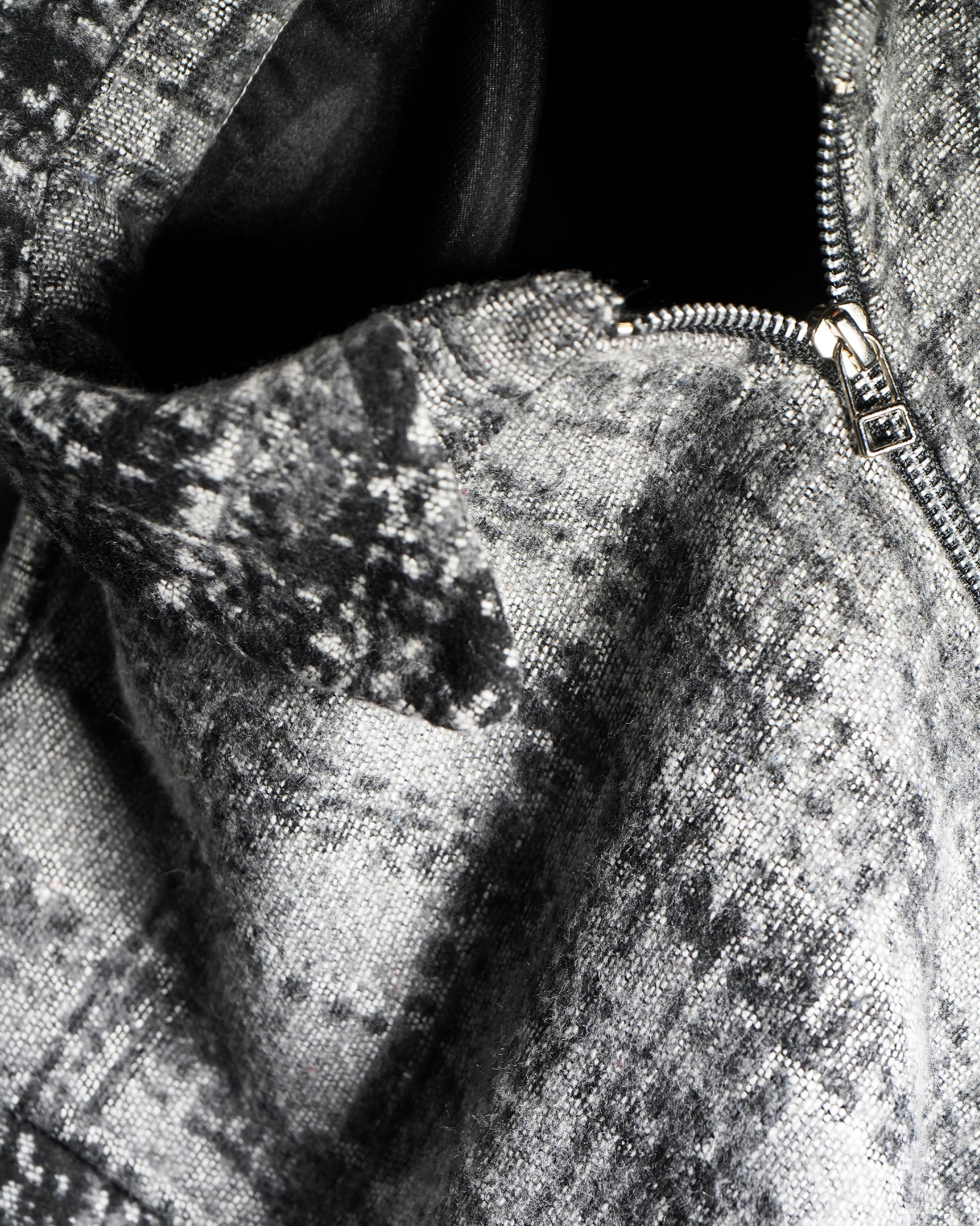 Either way - we created a 100% original pattern, and from there sourced the best wool for the exterior we could find. A 60/40 blend, and lined the Shacket with the reverse side of a black satin interior to add warmth and so the wool would not irritate or itch the skin.