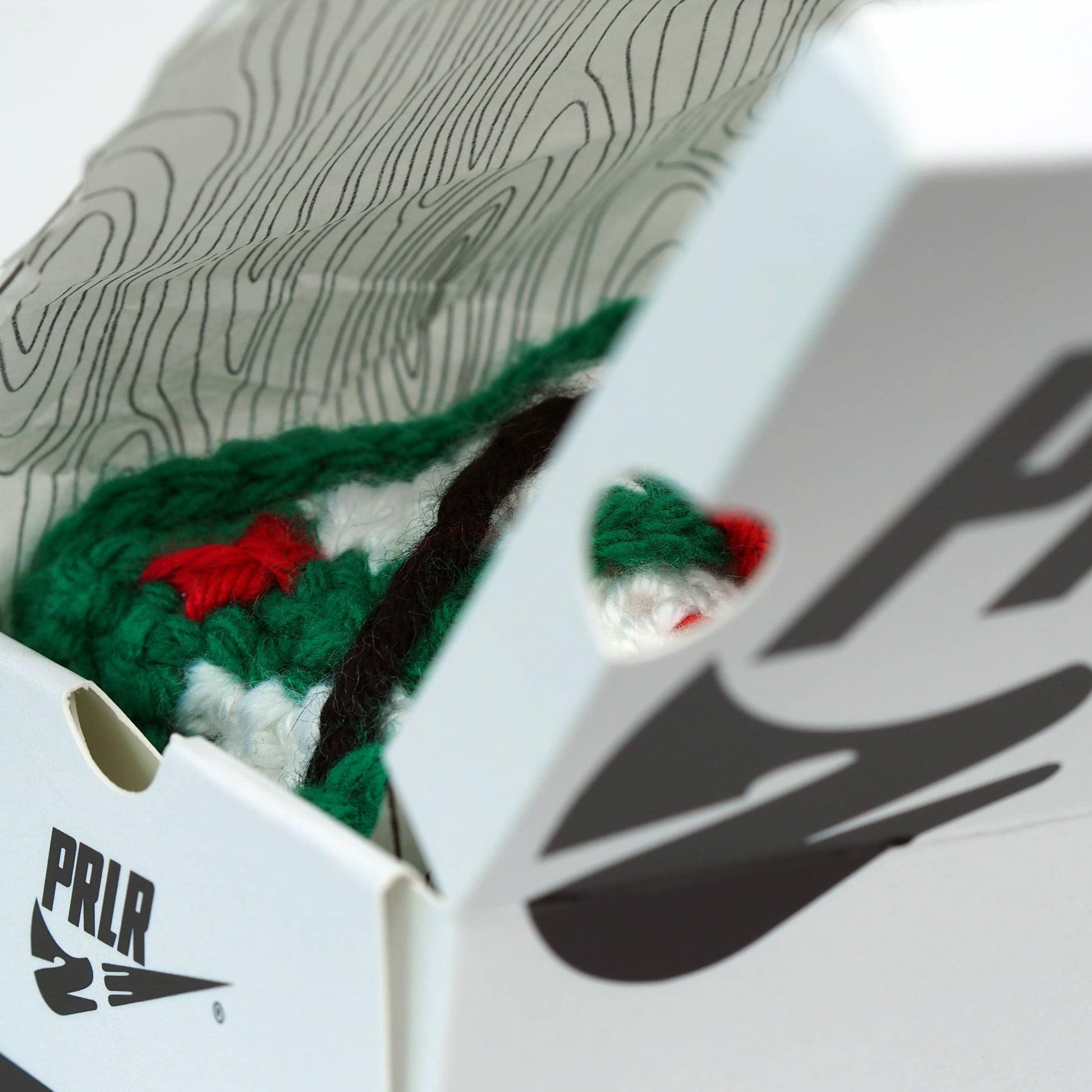 Kick Knits is a hand crocheted homage to the grails we sought out for from the famous Swoosh brand. The "Heiney," "Tiff," and "Raygun" are the first three Kick Knits to make it to your collection.