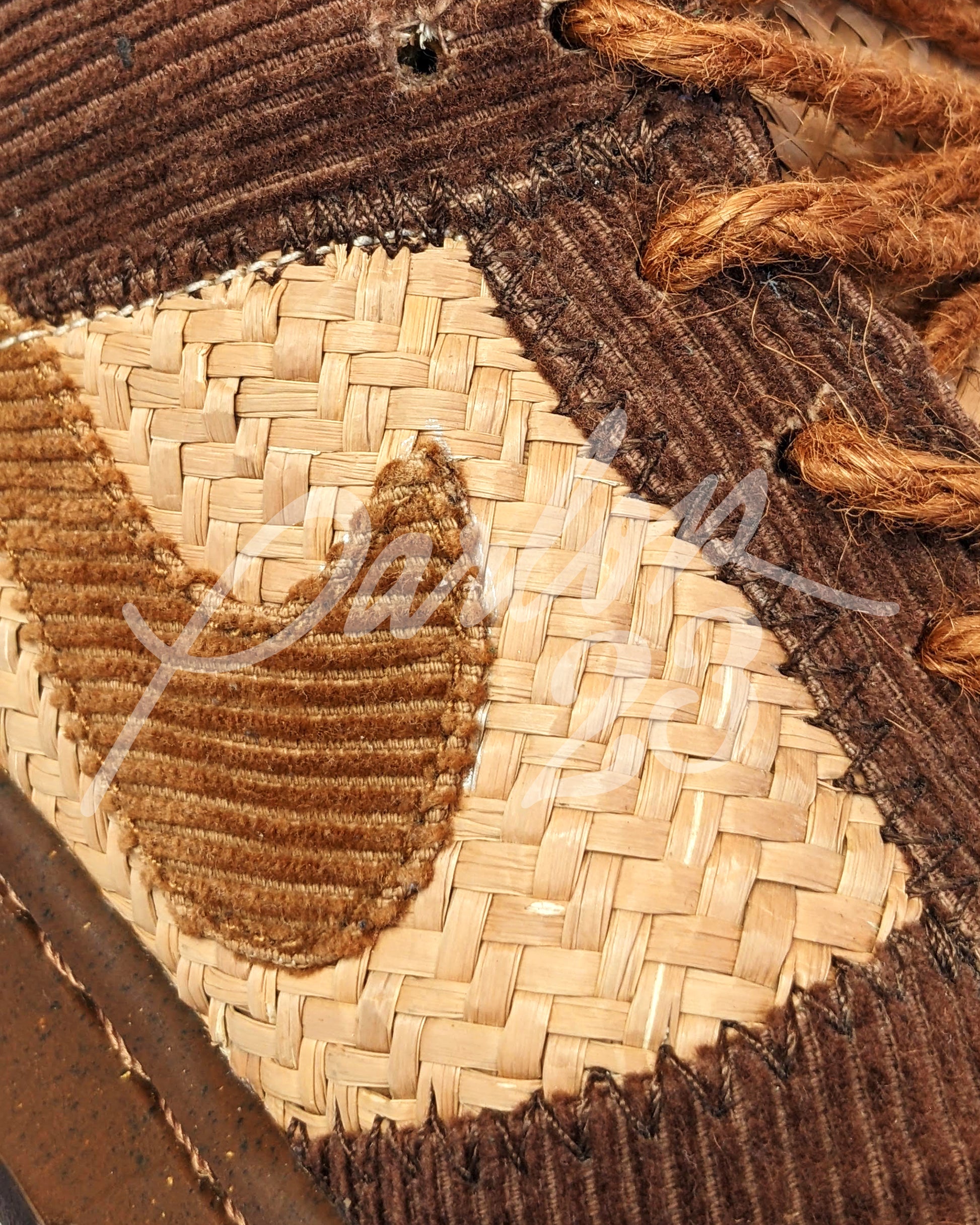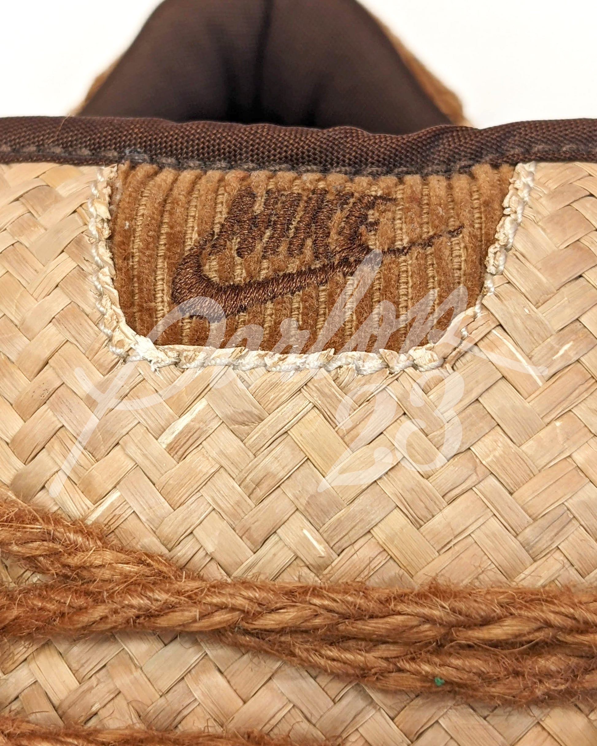 The Nike SB Dunk Low 'Gatherer' is one of Forbes' designs that never reached the public, likely due to the potential impracticality of the upper materials. The shoe boasts a predominantly brown seagrass interweave upper on the mid-panel, toe box, and tongue. Brown corduroy dresses the overlays and Swoosh. Completing the look are macrame hemp laces, a brown speckled midsole, and a brown outsole and interior lining.