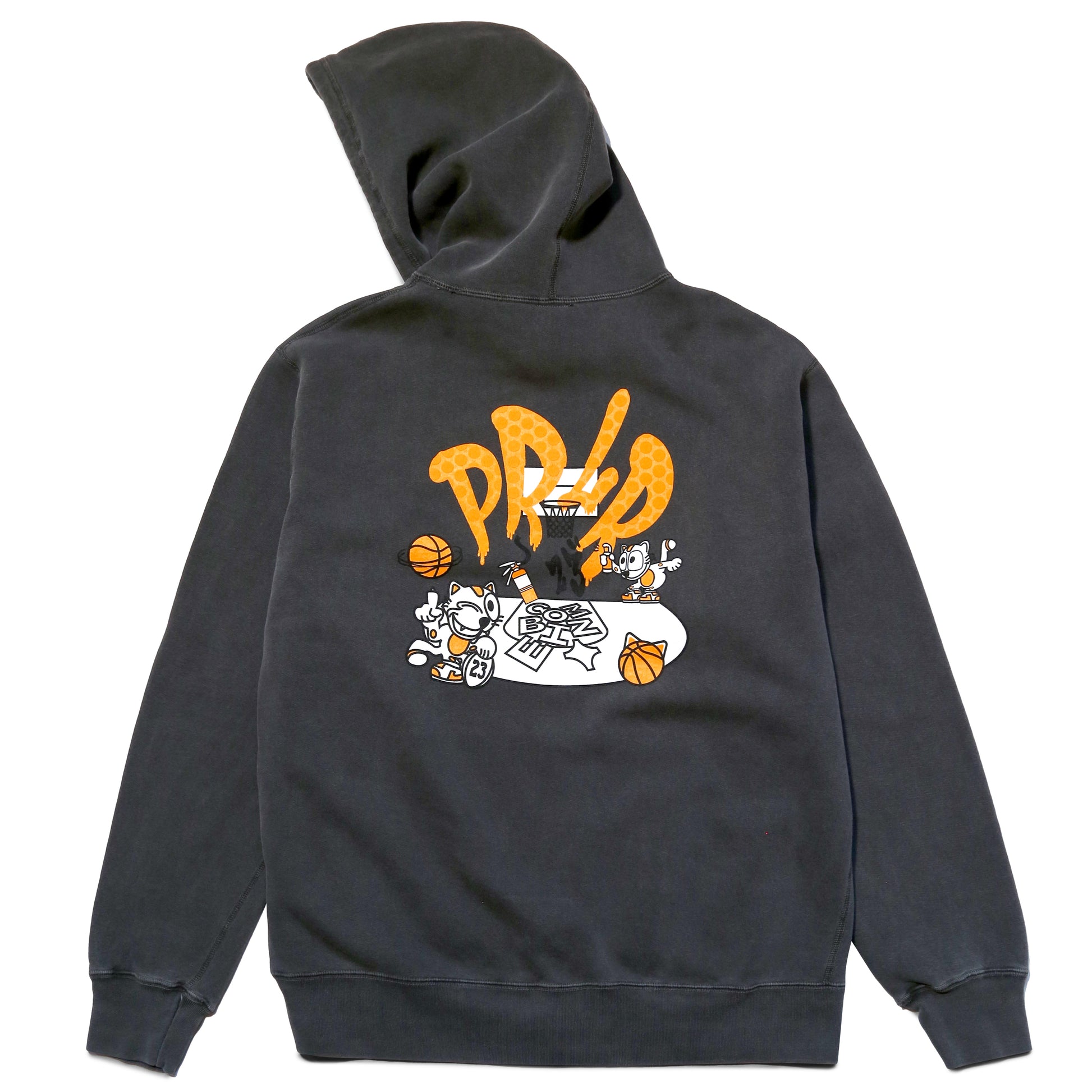 The "Shoot Out" hoodie embellishment shown here features a screen printed front chest hit. The back hit pays tribute to our epic shootout at The Combine! We did a puff print, which gives the effect of a basketball!
