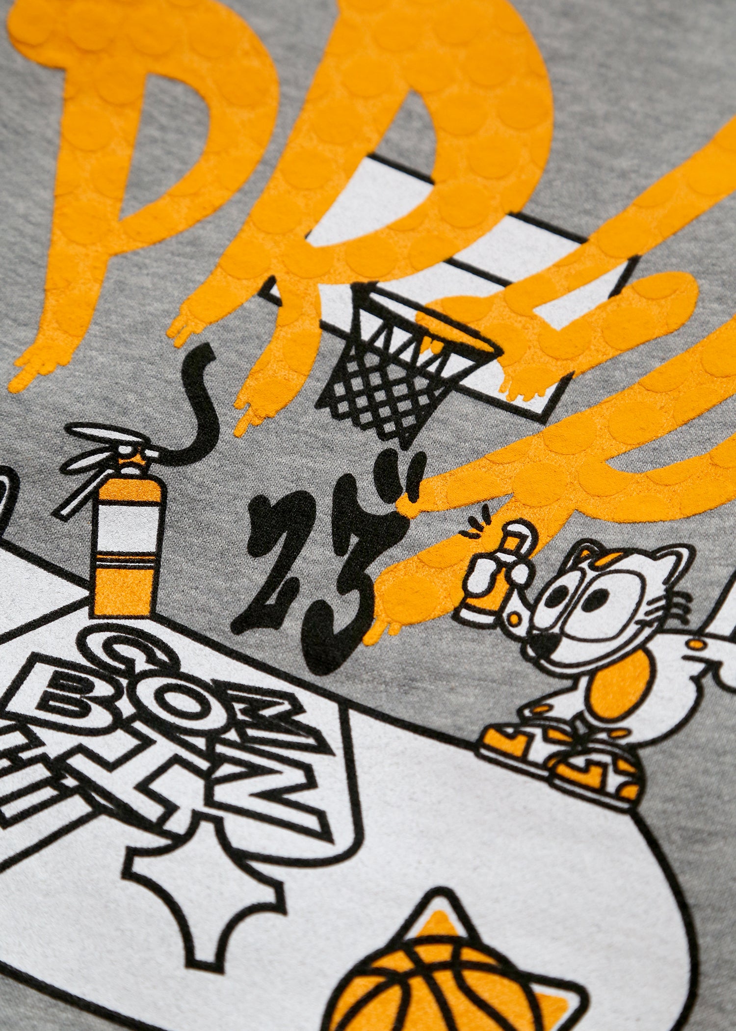 The "Shoot Out" 1/4 Zip embellishment shown here features a screen printed front chest hit. The back hit pays tribute to our epic shootout at The Combine! We did a puff print, which gives the effect of a basketball!