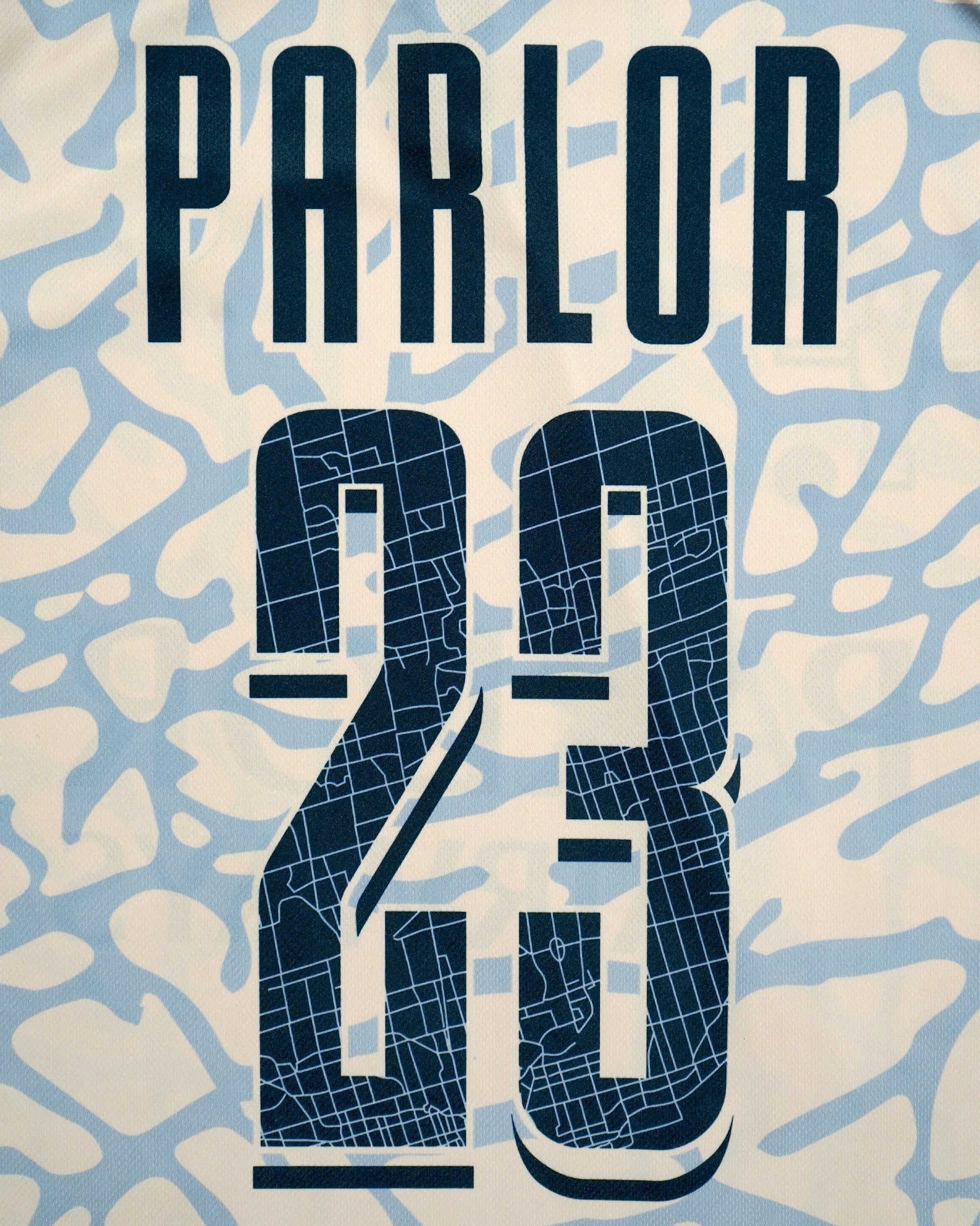 We created a 100% original pattern for these tops, and pulled some inspo from the classic Paris Saint-Germain team logo - naming ours, "Parlor Sneaker-Gallery".