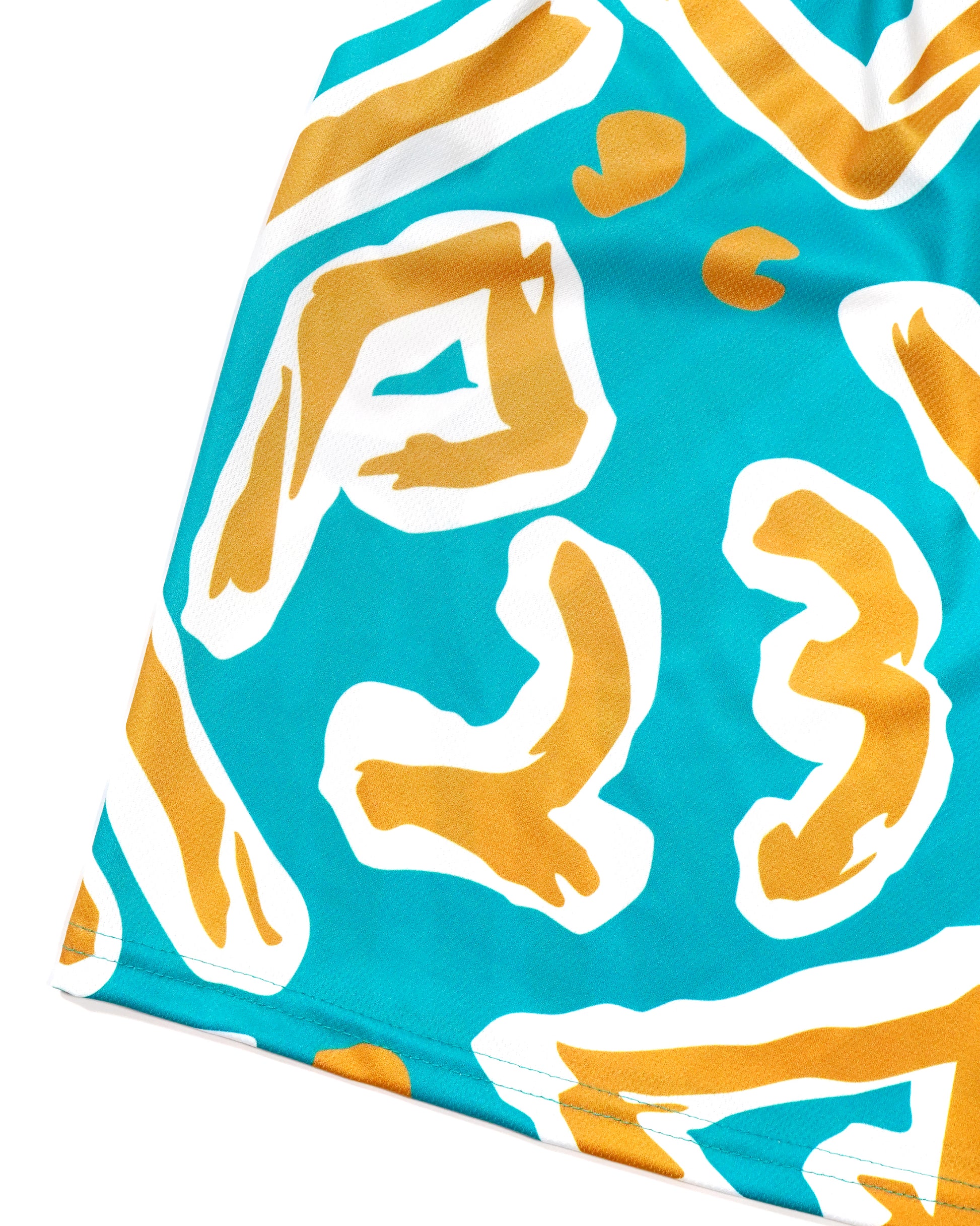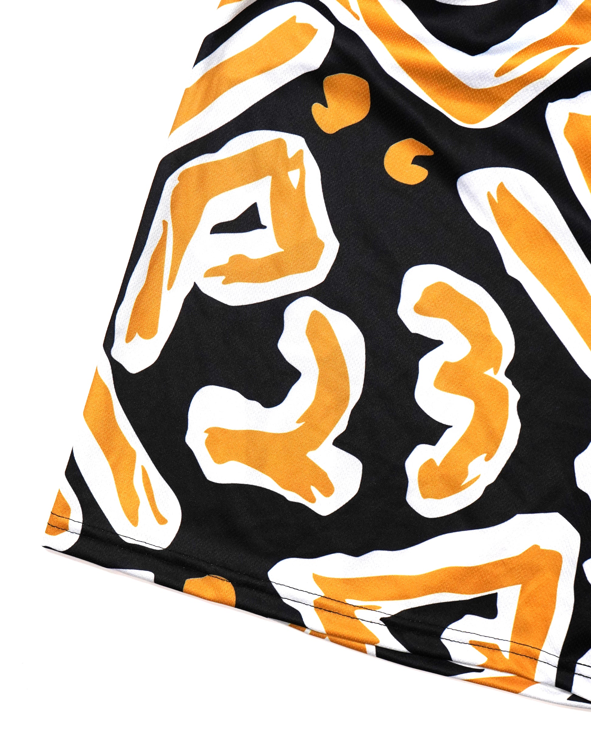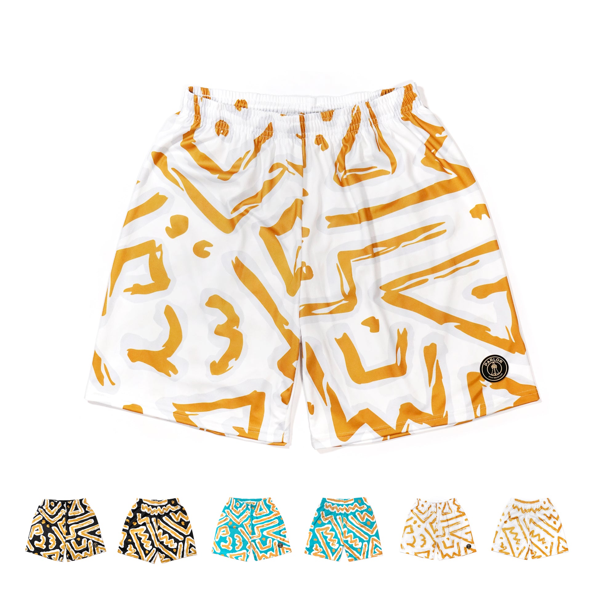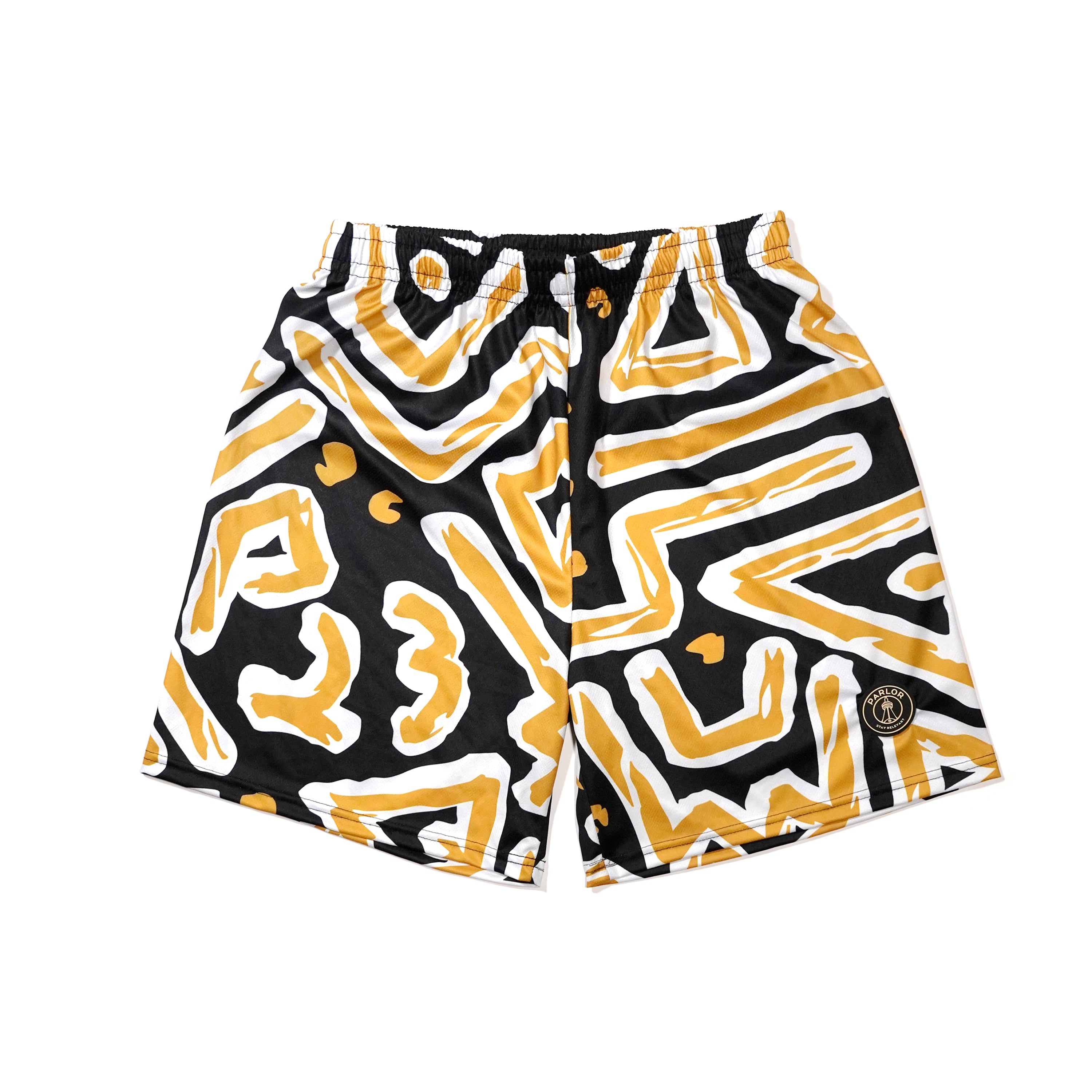 We created a 100% original pattern for these shorts, shared some ideas with Malcolm-Emilio - and he did his thing embracing our logos with his artwork.